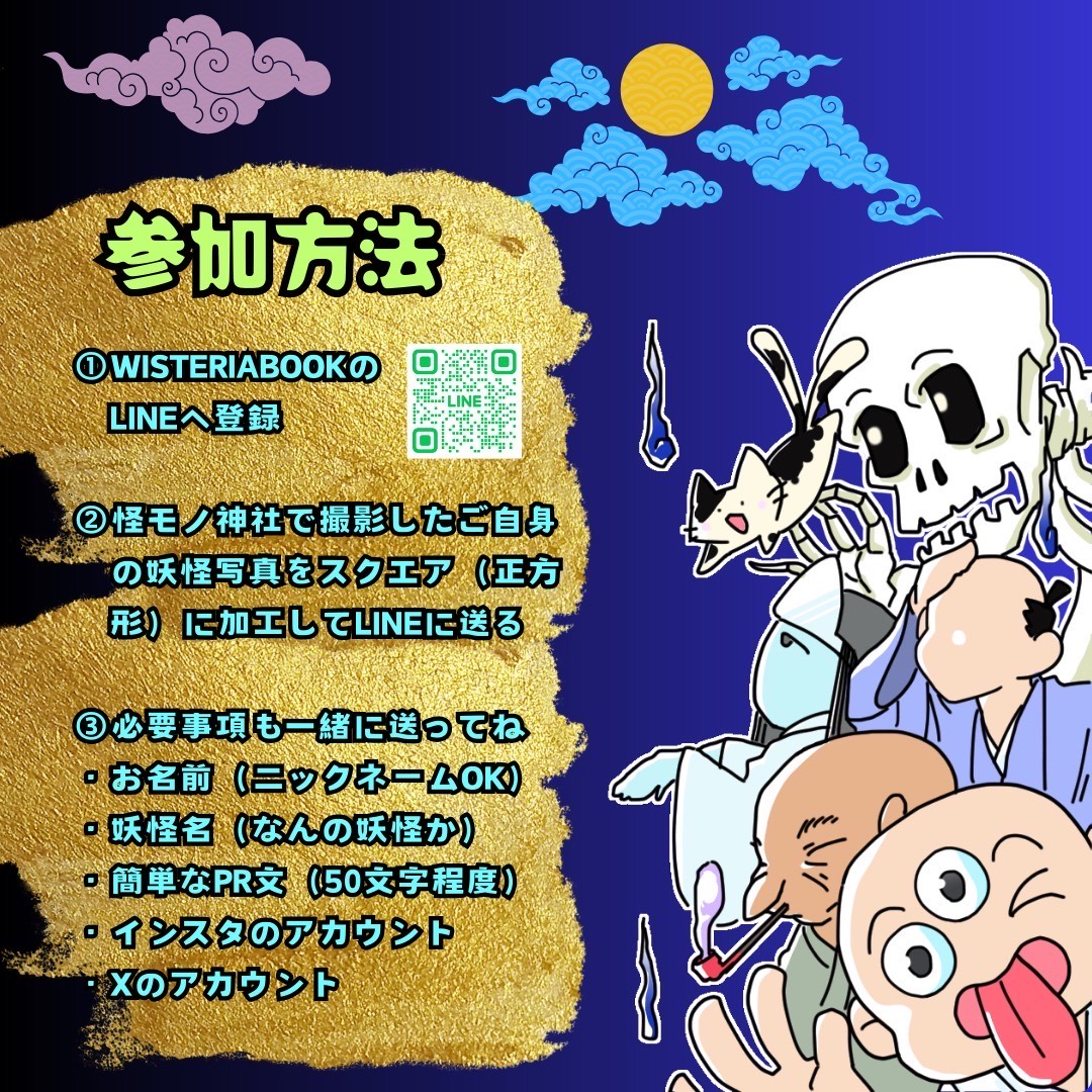 WISTERIABOOKの公式のInstagramとXにお申込みいただいた妖怪のお写真と情報を掲載させていただきます。一緒にタイムラインを怪モノ神社の妖怪で埋め尽くしてSNS上で百鬼夜行を目指しませんか?