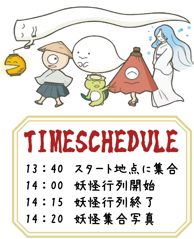 また14:00からは「怪モノ神社妖怪行列」「妖怪集合記念写真」を開催!